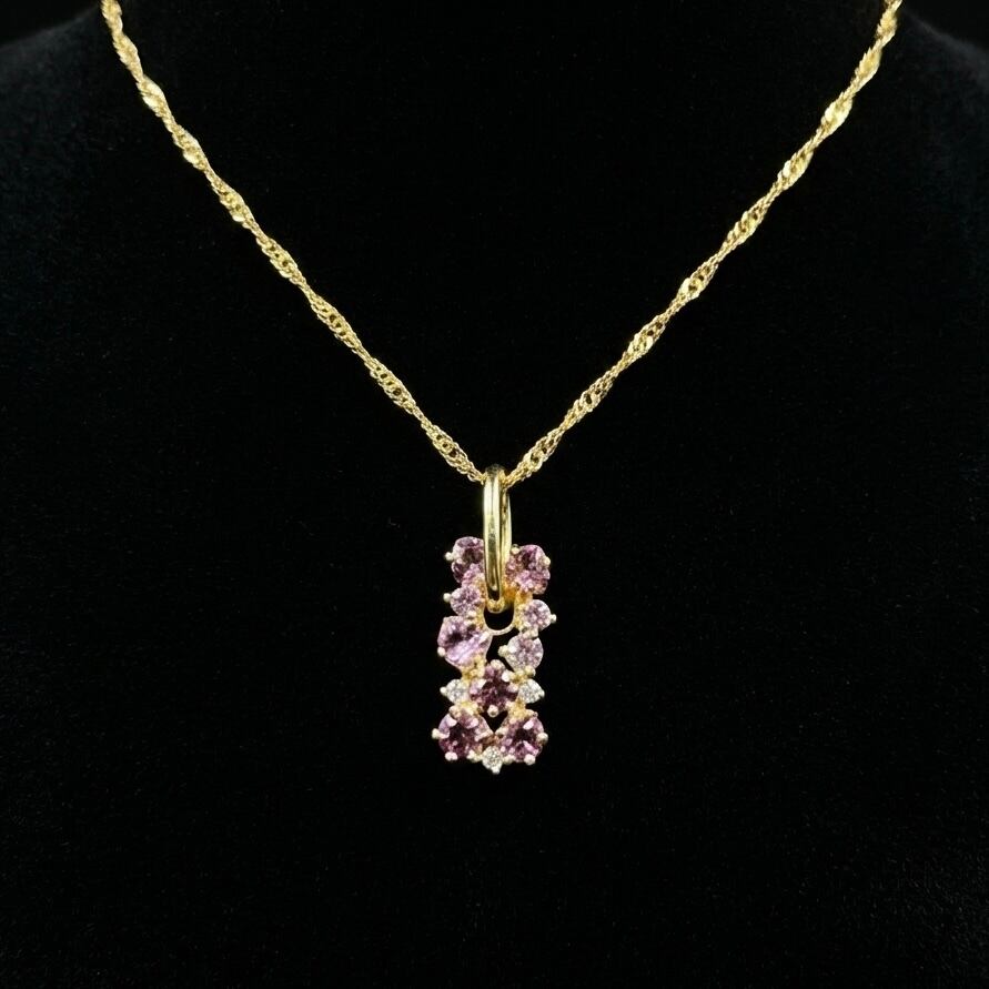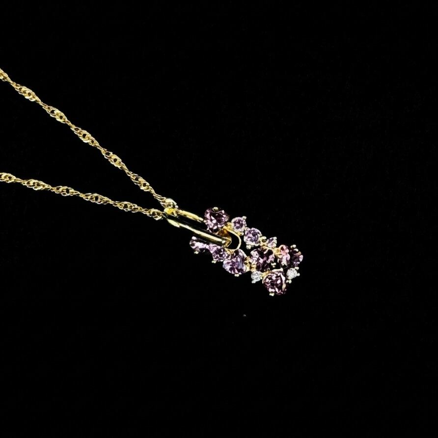 ライトパープルのストーンを小花のように並べ、華やかな煌めきを持つフラワーモチーフペンダント。