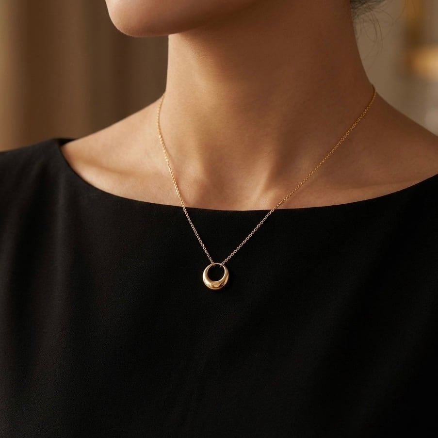 ミニマルな美しさを宿す、ゴールドサークルペンダント。