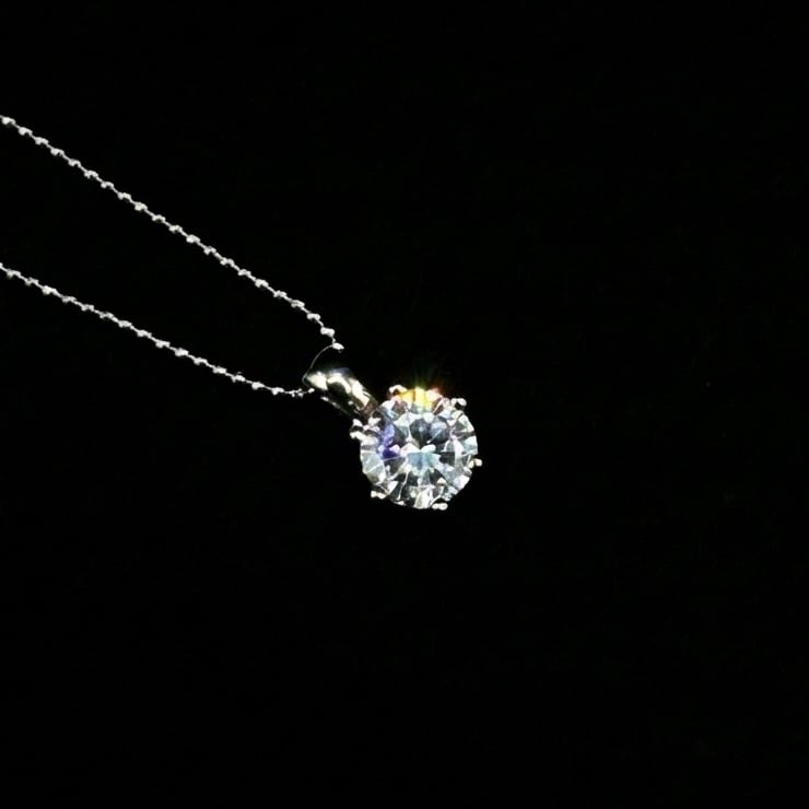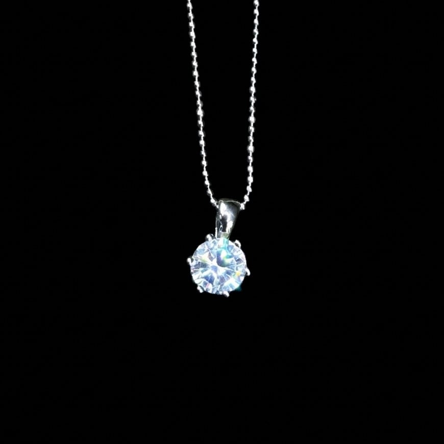 クリアストーンを一粒だけシンプルにセットした、王道のソリティアデザインペンダント。